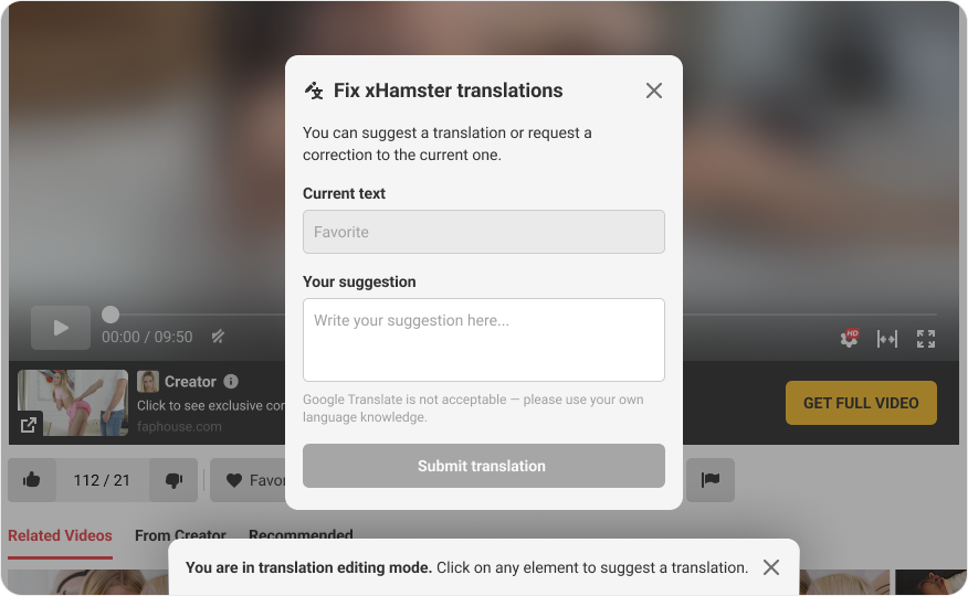 Here at xHamster, we’re always looking for new ways to improve our platform. We continuously translate our interface into many languages to make the site accessible to users around the world. But great translations require the input of native speakers and genuine feedback.